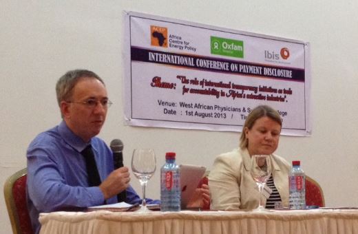 The African Centre for Energy Policy, IBIS Ghana, and Oxfam America co-sponsored the International Conference on Payment Disclosures in the Extractive Industries in Accra on August 1st, to discuss the role of international transparency initiatives as tools for accountability in Africa’s extractive industries. There I had the opportunity to share developments in the US, European Union, Canada, and elsewhere related to the global momentum for increased transparency in the extractive industries. Covered by major TV stations in Ghana and other news media across Africa, the conference in Accra had a number of highlights. Key quotes and links to presentations from the event include:
